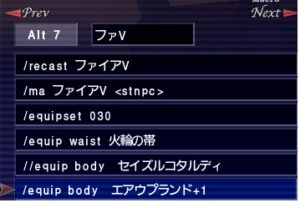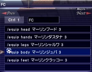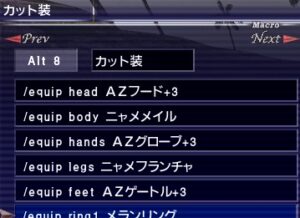 スタのマクロ:装備セットとローブが爆発してて、セットを削る時にマクロ化しました。